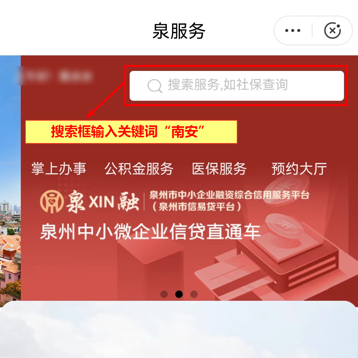 第二步:在【搜索框】輸入關(guān)鍵詞【南安】